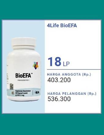 4Life BioEfa Detail Produk 4Life BioEfa Memelihara kesehatan jantung, kardiovaskular, dan sistem saraf dengan kandungan utama Minyak ikan, Minyak Biji Rami, Minyak Biji Safflower, Minyak Biji Borage, dan tokoferol untuk menjaga kesehatan imun Anda dan keluarga. Sekilas tentang Produk BioEFA adalah produk 4Life dengan sumber utama asam lemak esensial omega-3 dan omega-6. Produk ini terbuat…